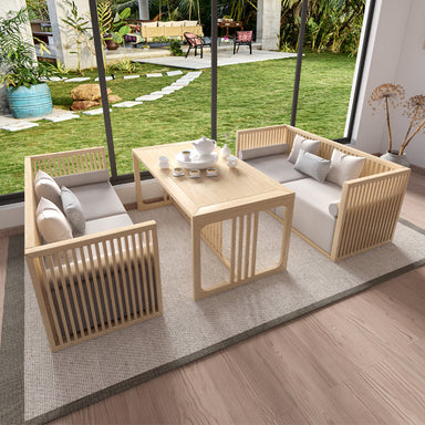 Angela SHERATON Solid Wood Japanese Dining Table and Chair Combination. For small apartment home living room, seating for 4 people to 12 people di...