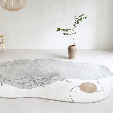 Establish a contemporary aesthetic in any room with this area rug, showcasing an abstract pattern in simple beige. This durable...